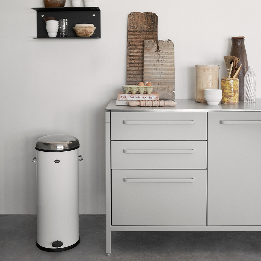 Vipp17 pedalspanden er den største af Vipp spandene, ideel til brug i køkkenet.