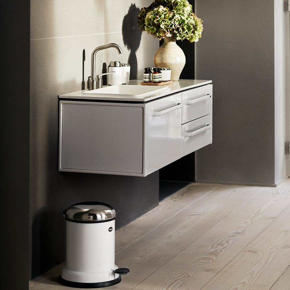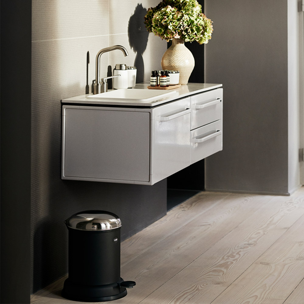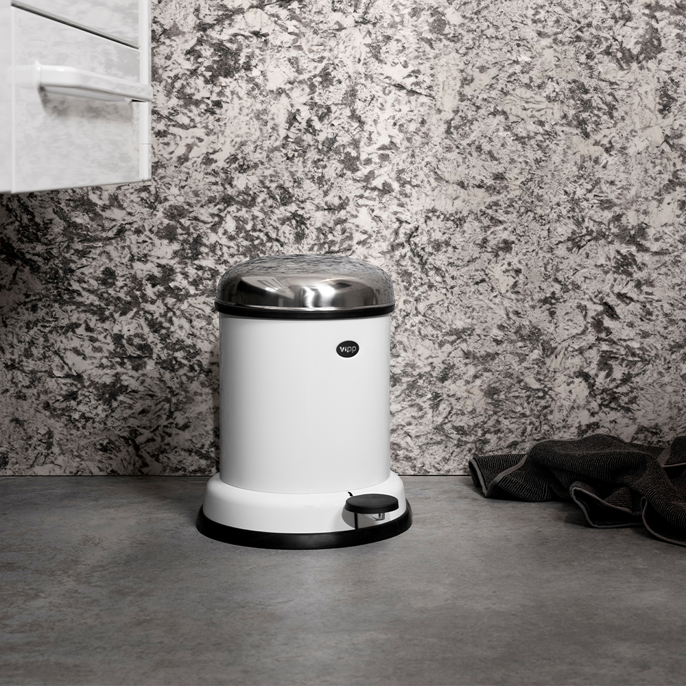 Vipp14 pedalspanden er en lille skraldespand til badeværelset. Denne pedalspand er udstyret med en udtagelig inderspand, et låg der sikrer lufttæt tillukning og en dæmpemekanisme, der lukker spandens låg i en blød bevægelse. En gummiring i bunden beskytter gulvet.