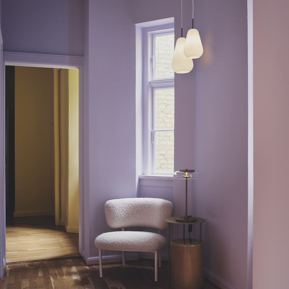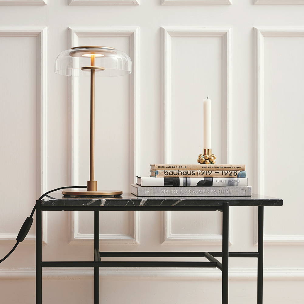Blossi bordlampen indeholder den nyeste LED-teknologi, hvilket kommer til udtryk gennem det specialudviklede LED-modul, der findes i lampen. Modulet er placeret, så lyset spejles i lampens metal og det mundblæste glas, hvilket resulterer i et indirekte og blødt lys, der smuk oplyser omgivelserne. Ledningen har lysdæmper.