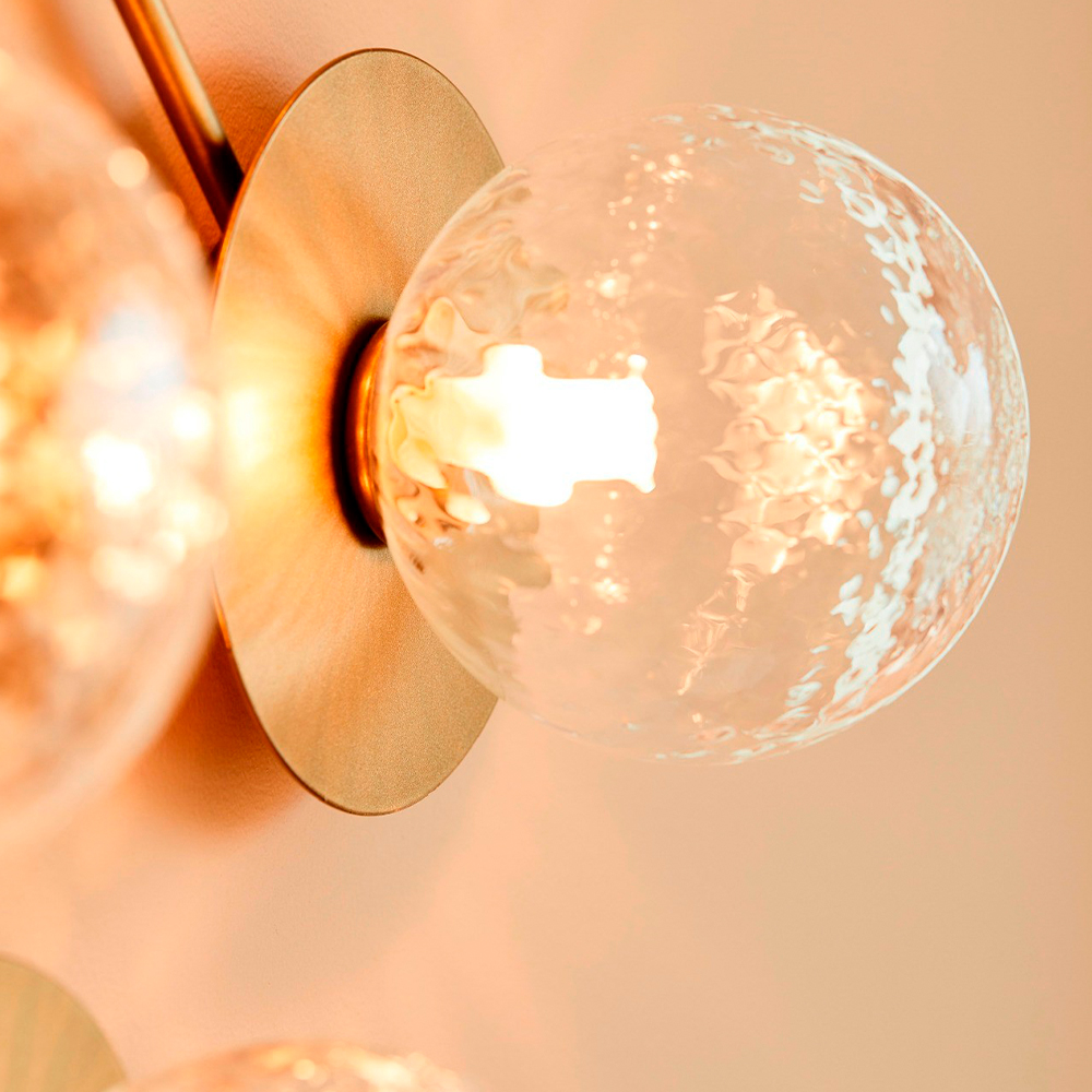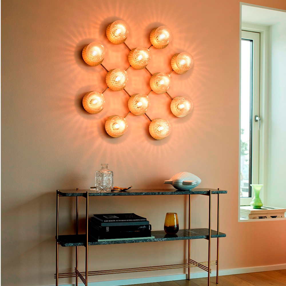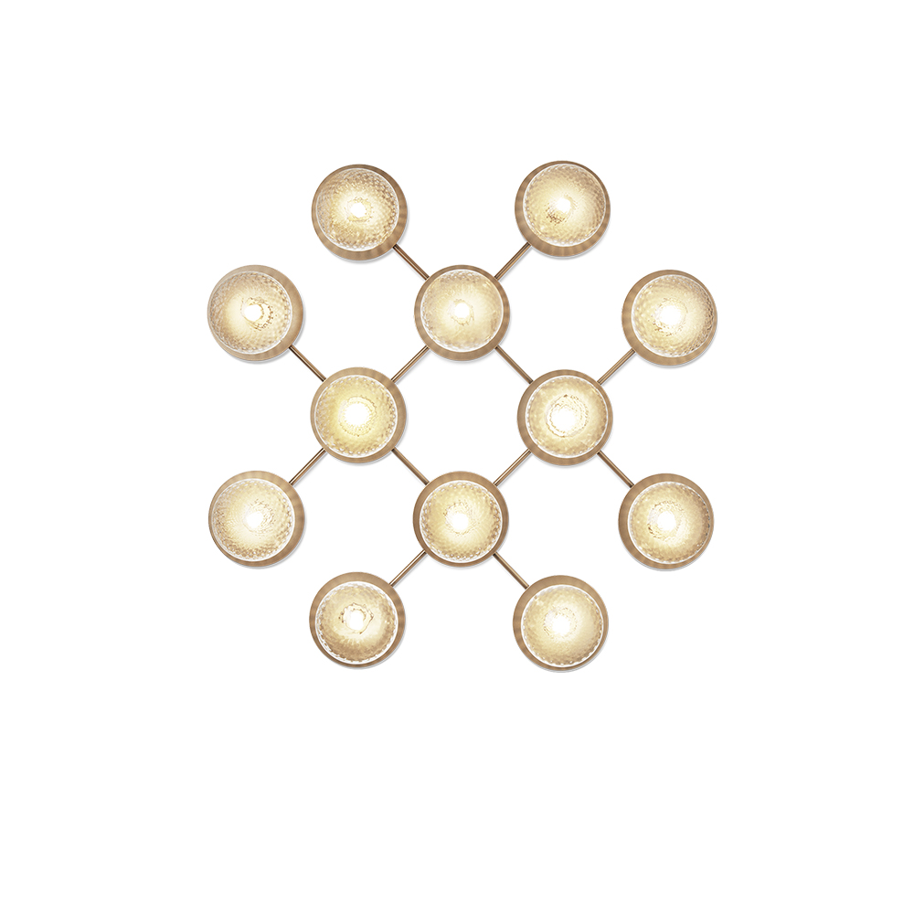 Liilas komponenter er ganske enkelt det mundblæste glas og den messingfarvede metalplade, som gør dens udtryk enkelt, fint og elegant. Det optiske glas skaber et blødt og diffust lys, der gør at lampen vil gøre sig bemærket i små som store rum. Lampens kan enten monteres op væggen eller i loftet, hvilket optimerer dens brugsmuligheder.