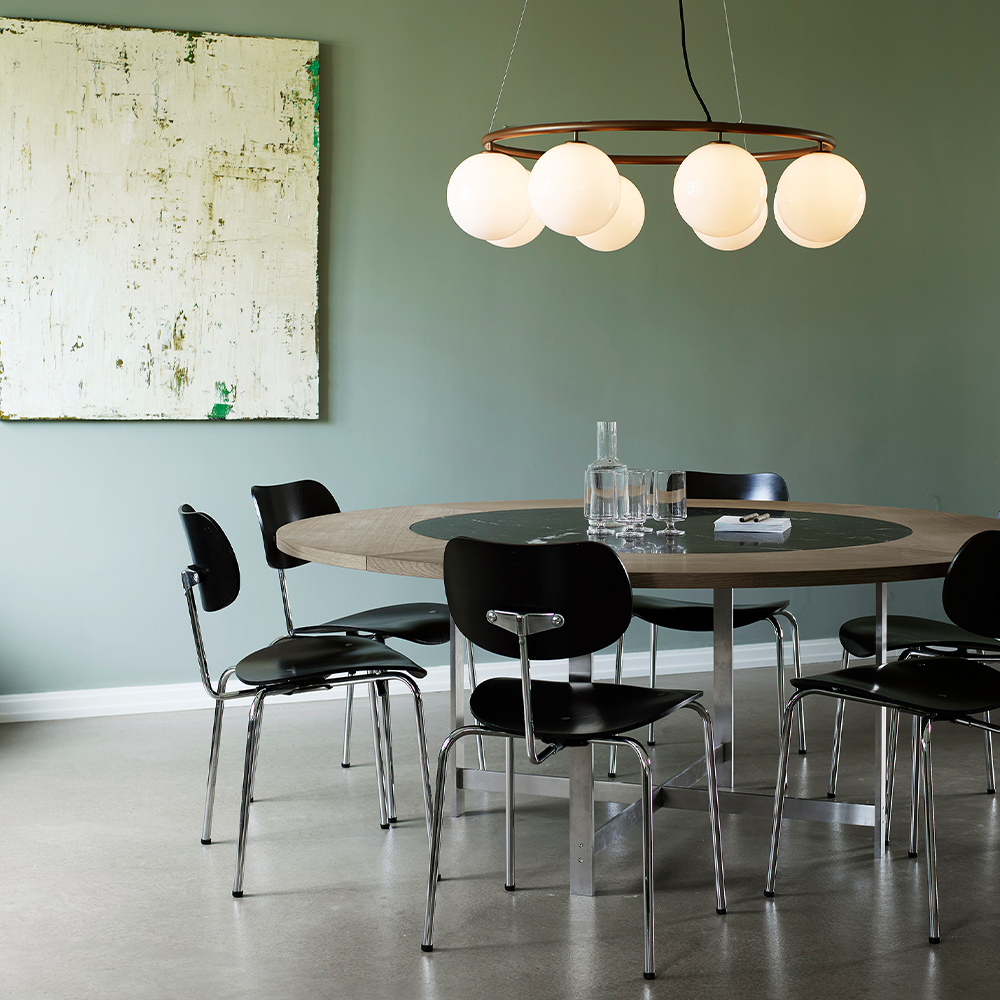 Den prisvindende Miira-kollektion, udvides her med en ny cirkulær lysekrone. Lysekronen har et klassisk udtryk og kan både hænge lavt eller højt i rummet. Højden justeres nemt fra 45 til 250 cm gennem et specielt wiresystem.