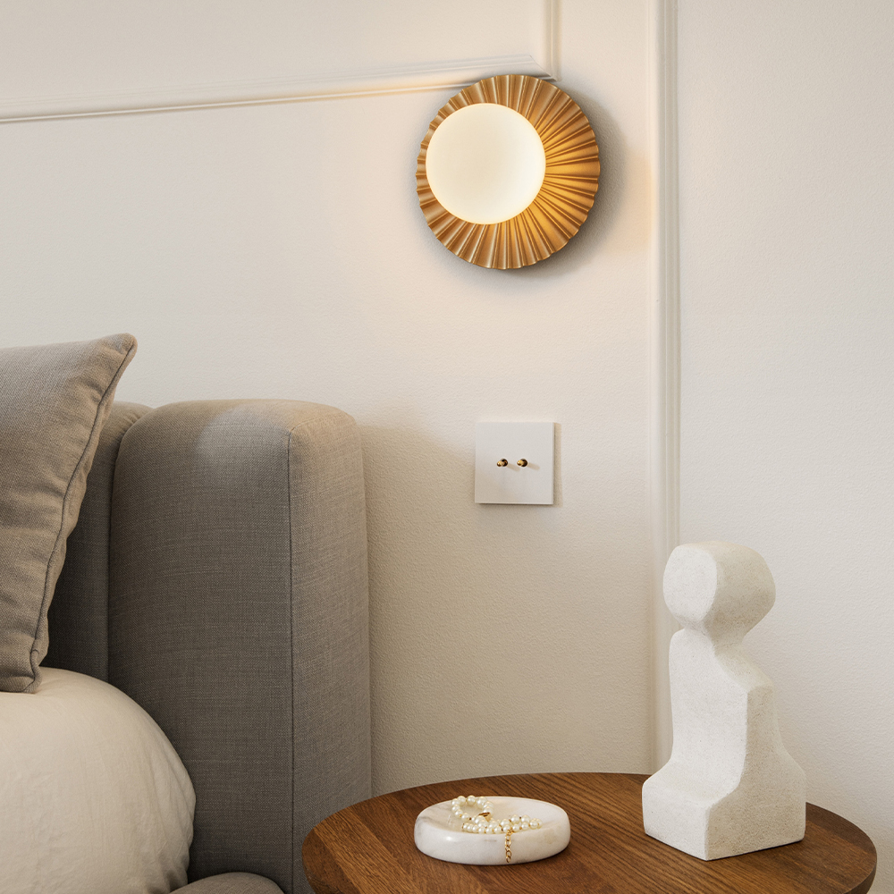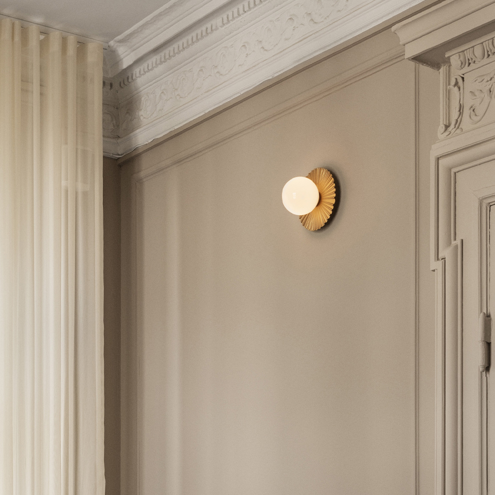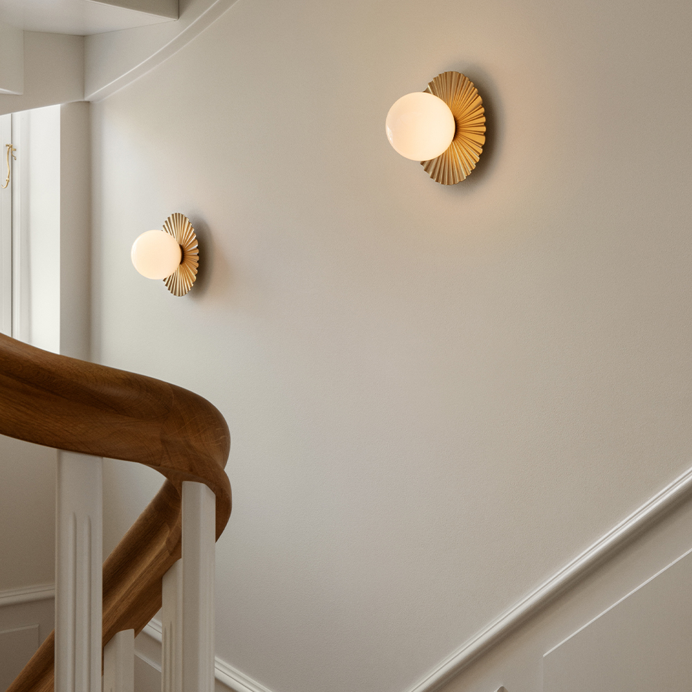 Liila Muuse Small er en lille væg- og loftlampe med et legende udtryk. Lampen består af en bagplade udført i gyldent metal, som komplementerer det opalhvide glas. Den organiske form og riflede struktur skaber dekorative lys- og skyggereflektioner, når lampen er tændt. Med sin beskedne størrelse, kan Liila Muuse Small lyse en trappeopgang op, da den ikke tager meget plads på væggen. Lampen har desuden en IP44 tæthedsgrad, og er godkendt til montering på badeværelset.