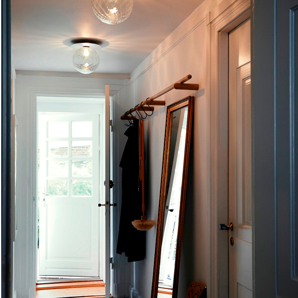 Liilas komponenter er ganske enkelt det mundblæste glas og den messingfarvede metalplade, som gør dens udtryk enkelt, fint og elegant. Det optiske glas skaber mønstre i lysets skær og gør at lampen vil gøre sig bemærket i små som store rum. Lampens kan enten monteres op væggen eller i loftet, hvilket optimerer dens brugsmuligheder.