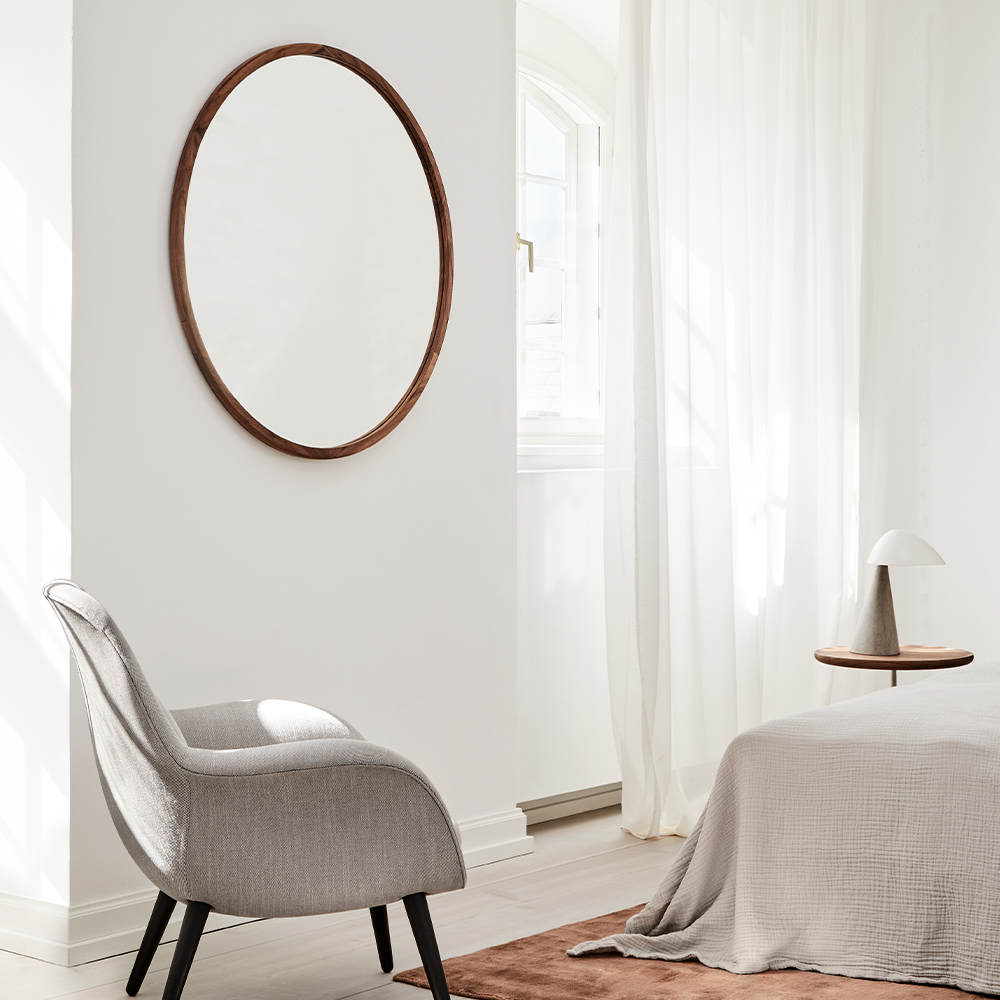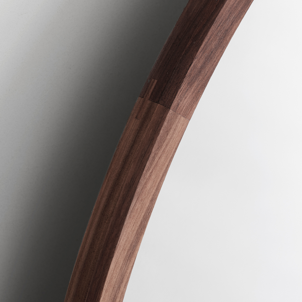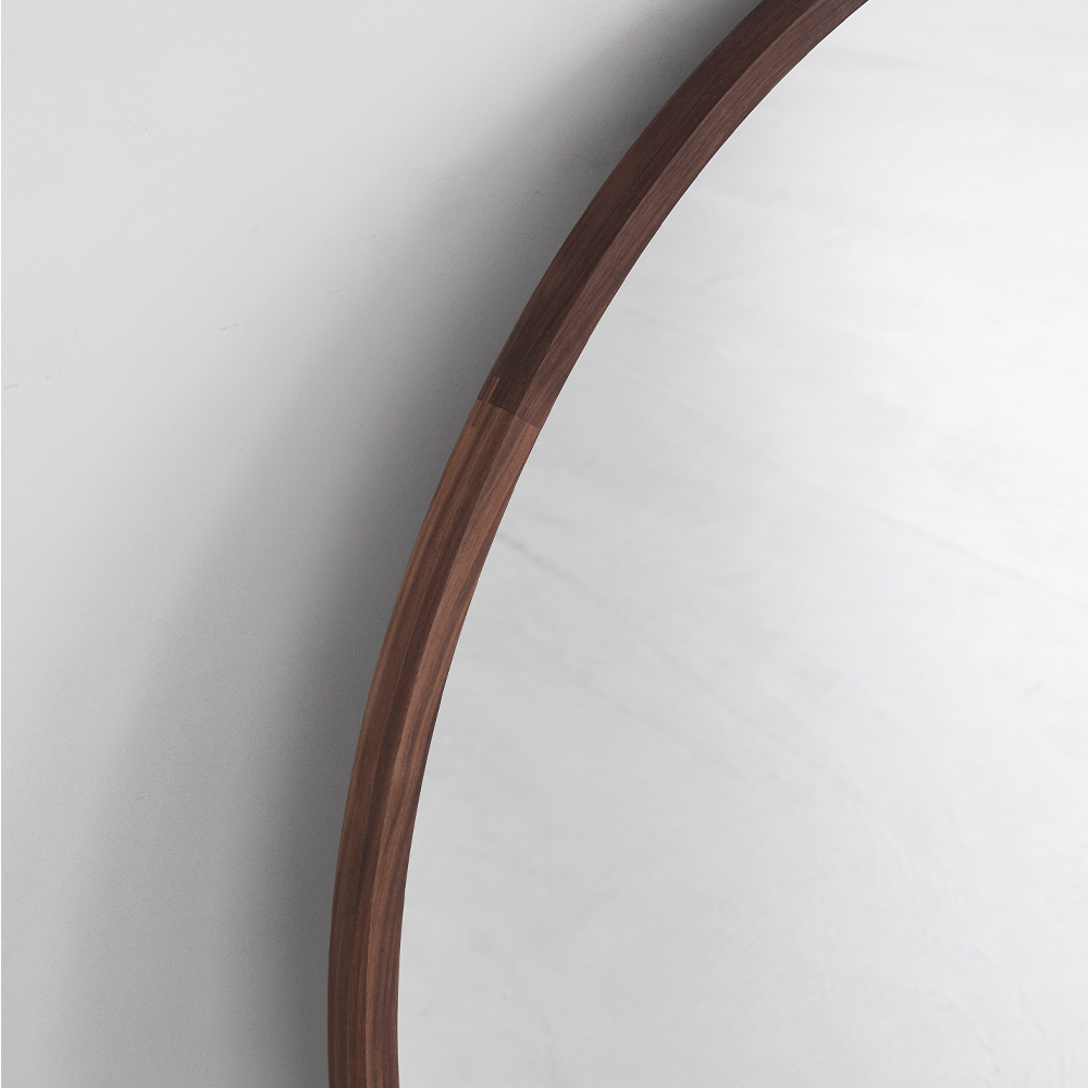 Med fokus på materialer, håndværk og sublim æstetisk, har danske OEO Studio skabt en serie spejle indrammet af massivt træ. Rammen af valnøddetræ giver et varmt og roligt udtryk. Træets årer er synlige og skaber et flot organisk mønster.