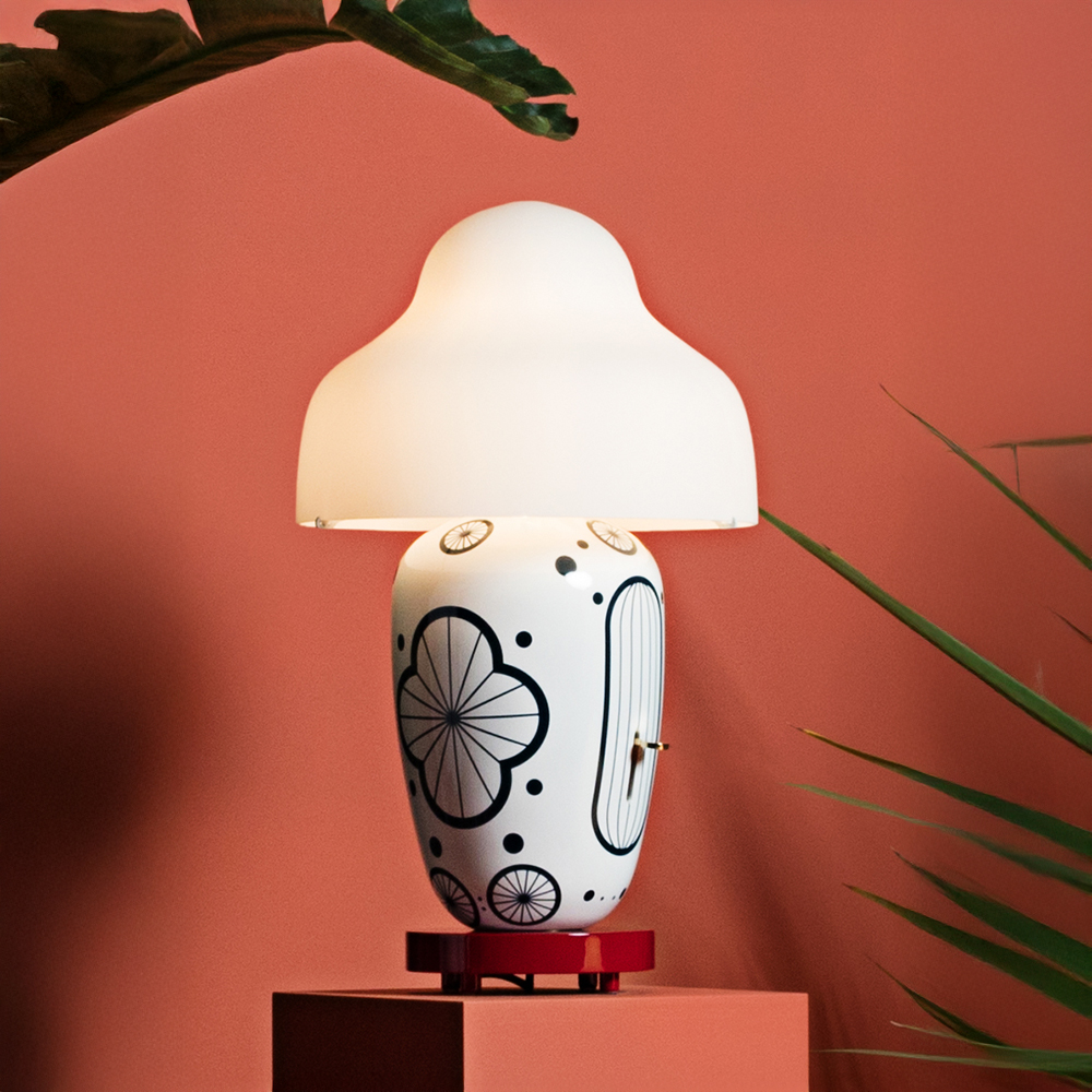 Chinoz er en bordlampe fra Parachilna, designet af Jaime Hayón, og den rammer et fint punkt mellem noget dekorativt og noget meget roligt. Formen tager udgangspunkt i den klassiske urne, men materialerne og proportionerne gør, at lampen føles nutidig og let at arbejde ind i mange typer indretninger. Det er en lampe, der står godt i sig selv, uden at den behøver forklare sig.