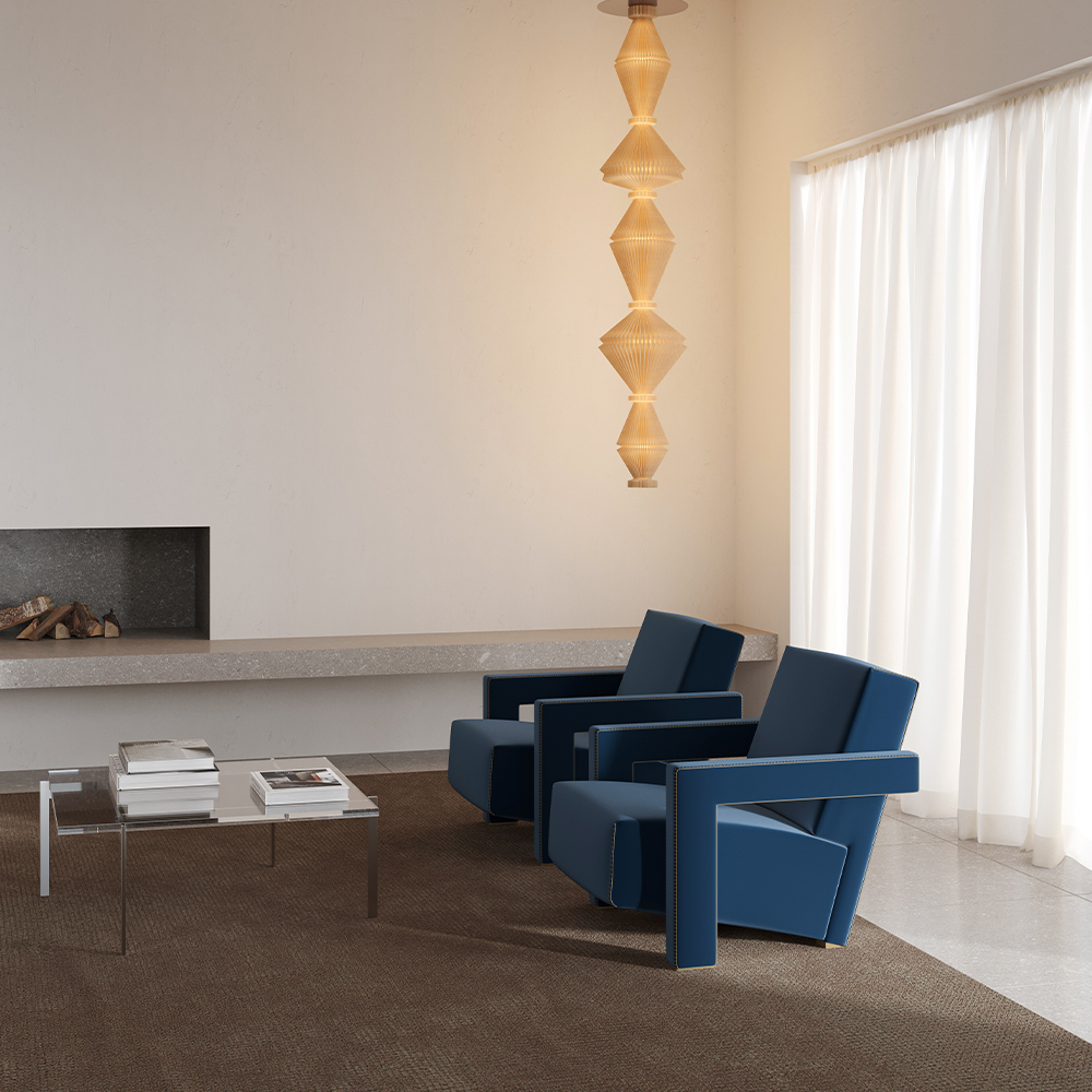 Den tekstile diffuser filtrerer lyset og skaber en varm, behagelig glød, mens bevægelsen i lampens konstruktion forstærker oplevelsen af lys i konstant forandring. Samspillet mellem mekanik, tekstil og lys gør Oïphorique T til mere end en traditionel pendel – den fungerer som et rumligt element, der aktiverer omgivelserne uden at virke dominerende.