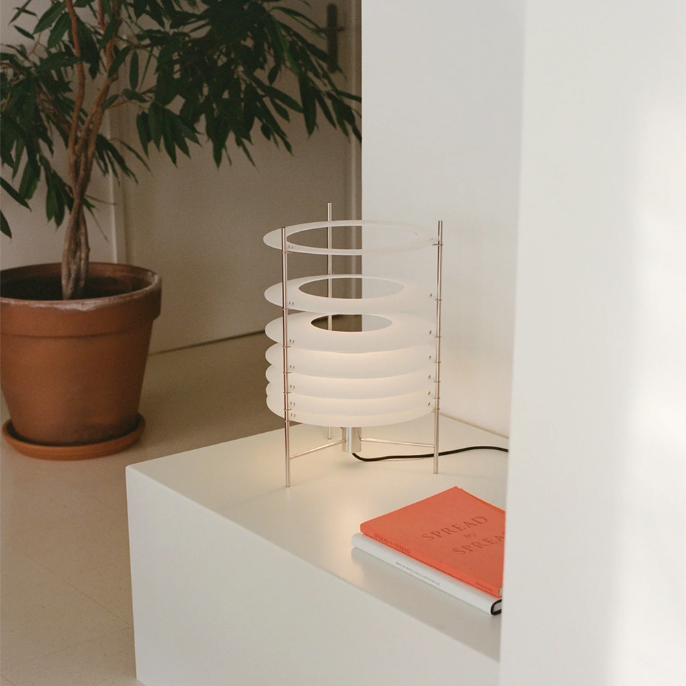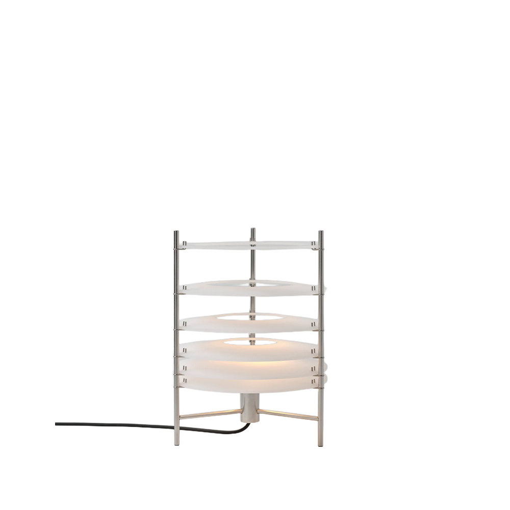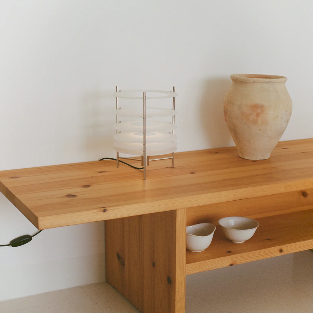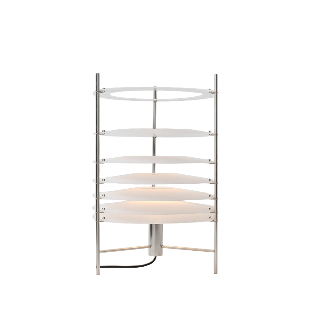 Topuro er en bordlampe fra Parachilna, designet af Guido Valín, og den adskiller sig fra mange andre lamper ved at arbejde meget bevidst med, hvordan lys opleves i rummet. I stedet for én samlet skærm er lyset opdelt i en række transparente akrylskiver, som giver lampen et roligt, næsten rytmisk udtryk. Det er en lampe, man lægger mærke til – uden at den larmer visuelt.