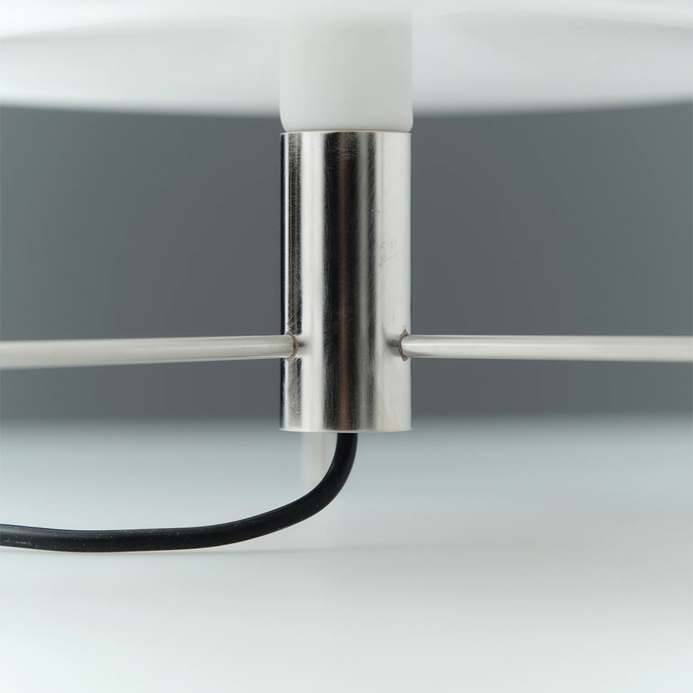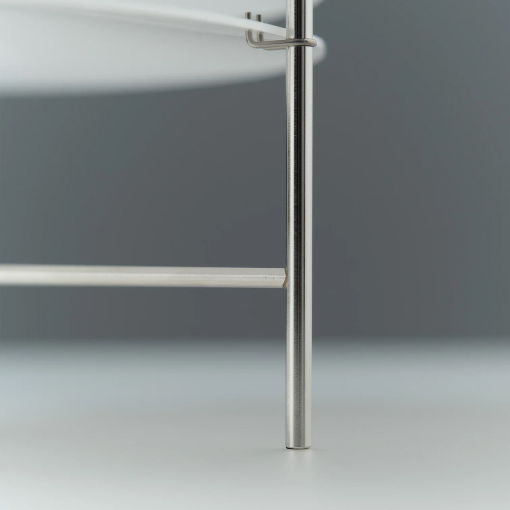 Konstruktionen er holdt let og præcis i rustfrit stål, som danner en diskret ramme omkring akrylen. Når lampen er tændt, filtreres lyset blødt gennem de enkelte elementer og skaber en behagelig, nuanceret belysning, der ændrer karakter alt efter hvor man befinder sig i rummet. Materialerne føles ærlige og gennemarbejdede, og man fornemmer hurtigt den kvalitet, Parachilna er kendt for.