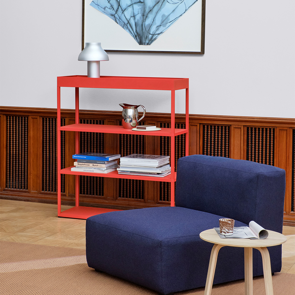 New Order System designet af Stefan Diez for HAY er et fleksibelt opbevaringssystem udviklet til at kunne tilpasses forskellige rum og funktioner. Den åbne gitterkonstruktion danner en enkel og robust ramme, hvor hylder, skabe og moduler kan kombineres i mange forskellige konfigurationer. Resultatet er et system, der kan vokse og ændre sig i takt med behovene – fra mindre opbevaringsløsninger til større, sammenhængende reolsystemer.