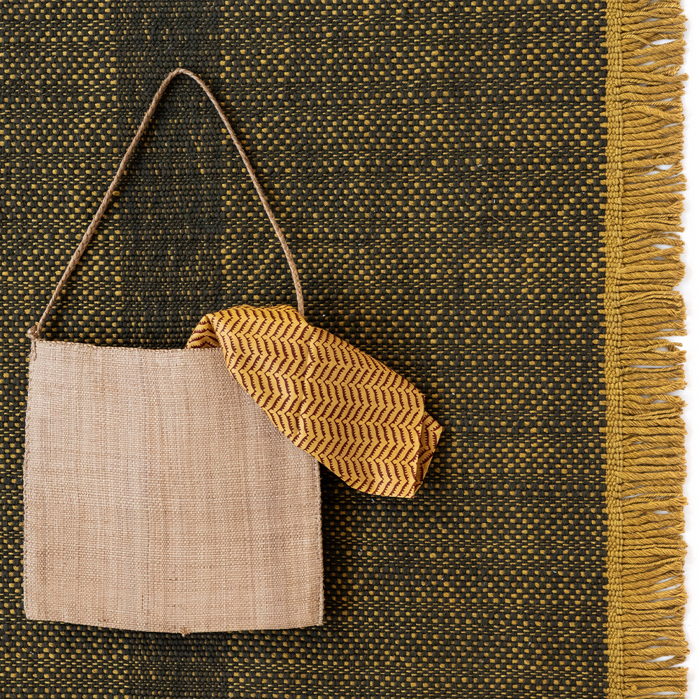 Tæppet er fremstillet i 100 % genanvendt PET-fiber, et materiale udviklet til at modstå sollys, fugt og vejrlig, samtidig med at det bevarer farve og form. Den fladvævede dhurrie-struktur giver en lav, fleksibel profil, som føles behagelig under fødderne og er nem at vedligeholde i udendørs miljøer.
