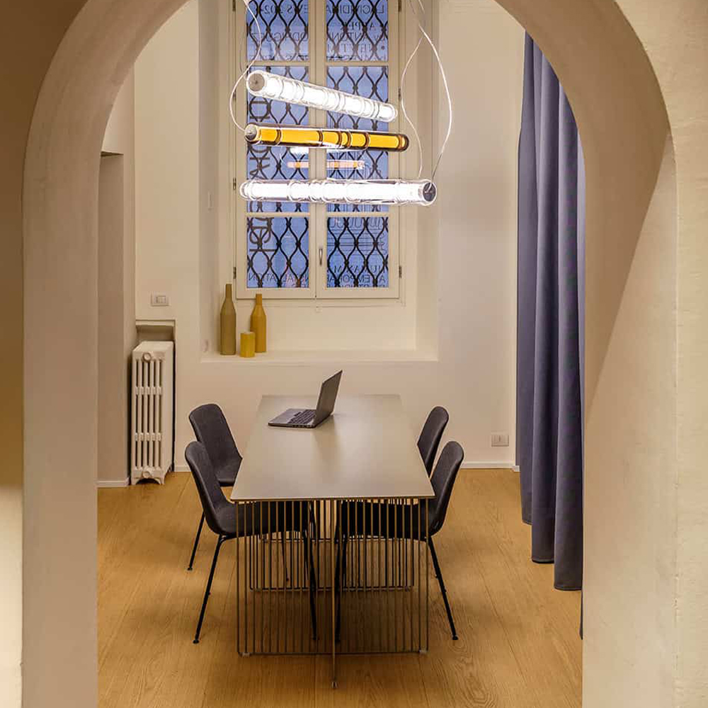 Stacking S er en videreudvikling af Leucos’ ikoniske Stacking-serie, hvor avanceret teknologi møder klassisk venetiansk glashåndværk. Pendlen bygger på den traditionsrige incamiciato-teknik, hvor flere lag glas sammensmeltes under blæsningen og skaber dybde, nuance og en særlig materialefornemmelse. Resultatet er et sofistikeret lys, hvor farver og transparens smelter sammen i en rolig, atmosfærisk helhed.