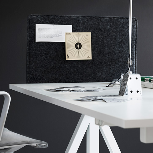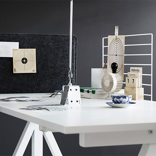 Denne aluminiumsskål fra String Furniture er en del af serien String Works designet af Björn Dahlström og Anna von Schewen i 2015. I serien finder du produkter, der tilsammen danner et funktionelt og pænt kontor i både det private hjem og i kontorlandskaber. De fleste af produkterne fra String Works kan kombineres med Strings klassiske reolsystem og udgør herved en smuk udbyggelse af det i forvejen velkendte byg-selv-koncept, som String er kendt for. Filtcoveret er støjabsorberende og fungerer derfor rigtig godt som afskærmning ved dit skrivebord, hvis du sidder i eksempelvis et større kontorfællesskab. Filtcoveret kan samtidig bruges som en opslagstale lige ved hånden, mens du sidder og arbejder.