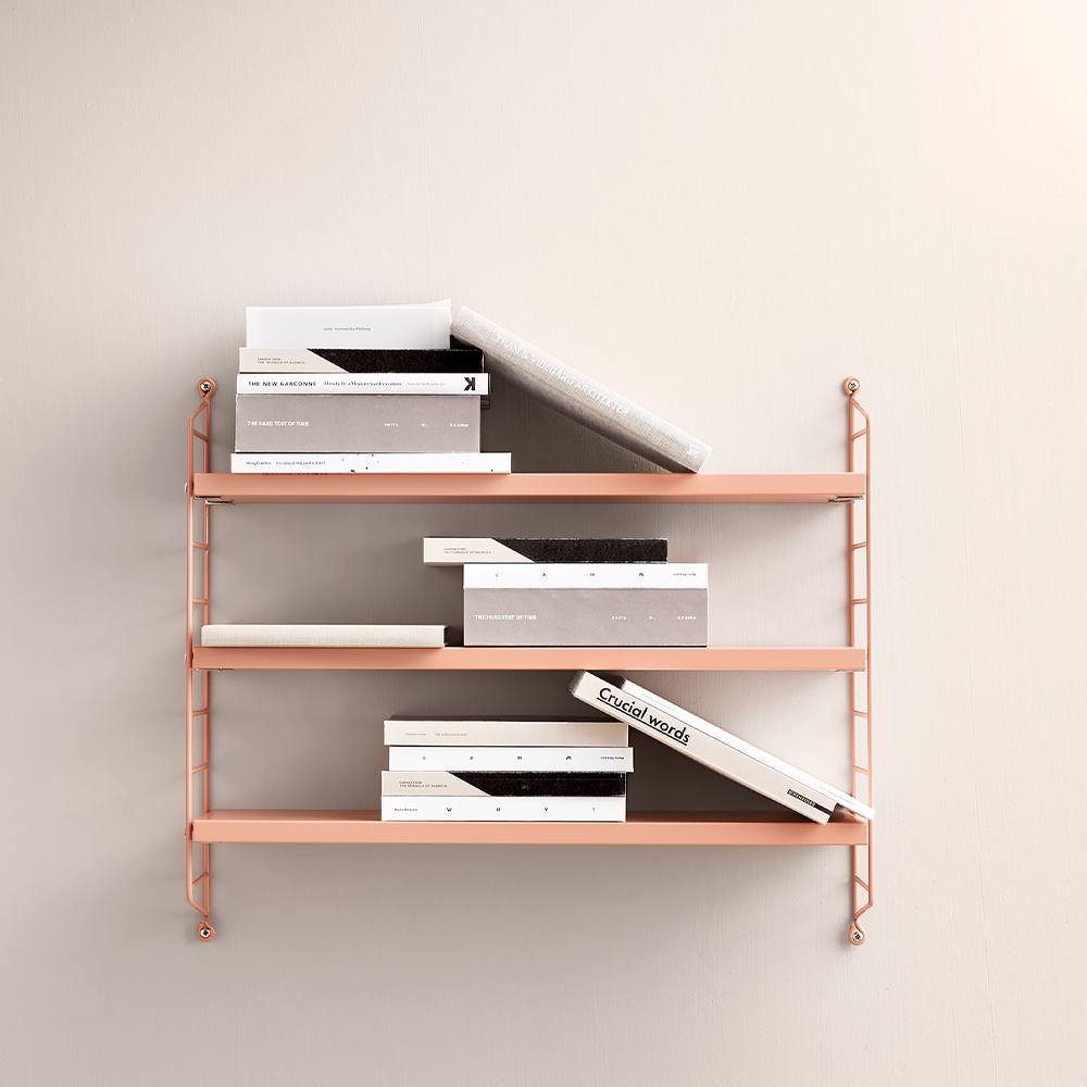 String Pocket har fået sit navn på grund af den praktiske og handy størrelse. Med en højde på 50 cm, bredde på 60 cm og dybde på 15 cm vil du kunne få plads til en String Pocket overalt. Monter den i dit soveværelse og brug den som dit natbord, stil det over et skab i din entre eller stue eller hvorfor ikke montere det i køkkenet til dine kogebøger og krydde