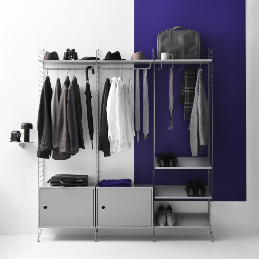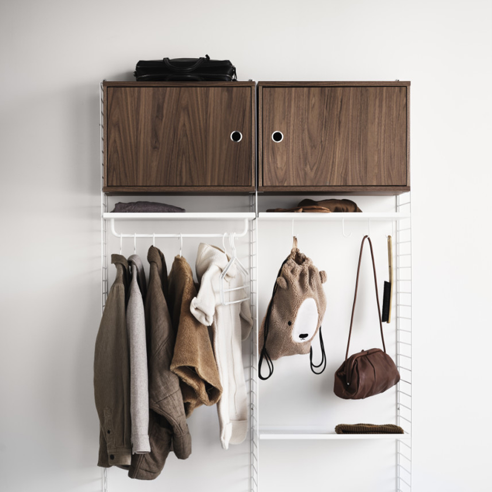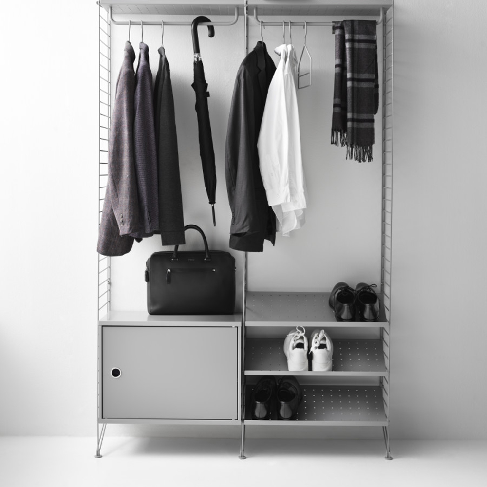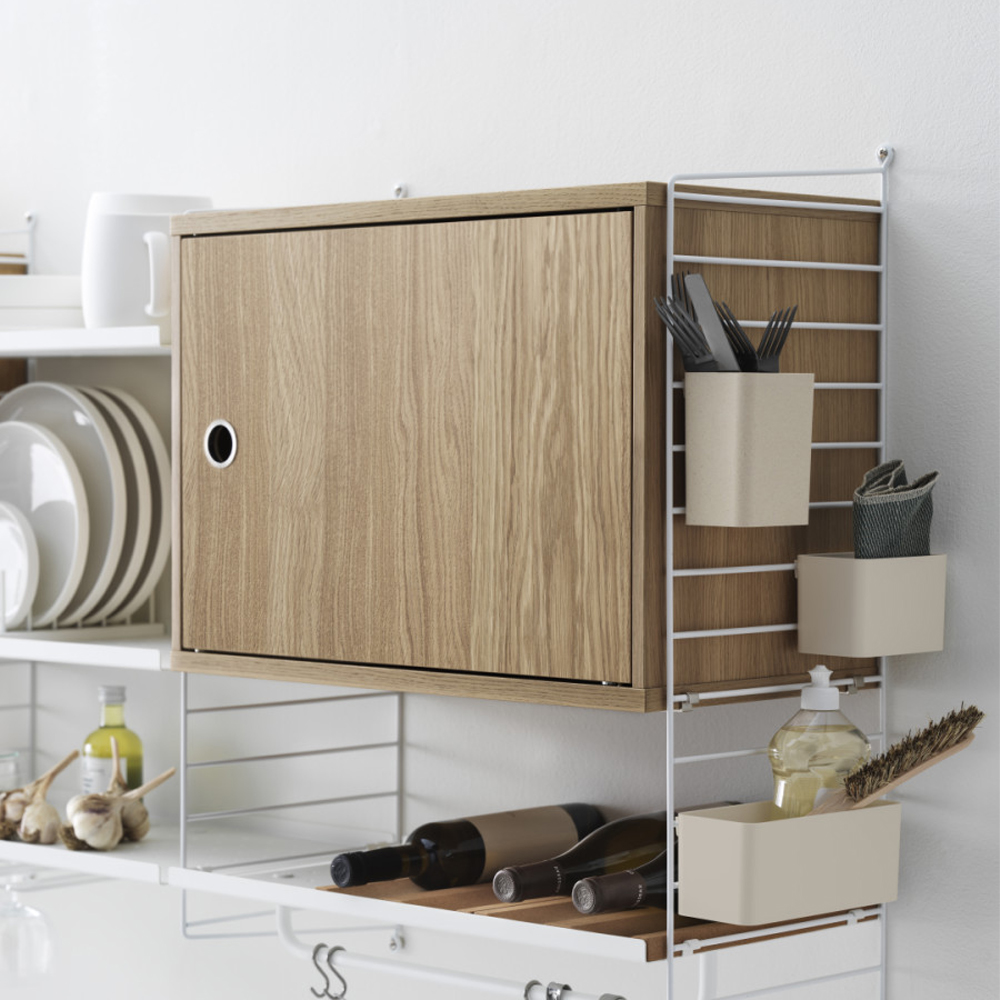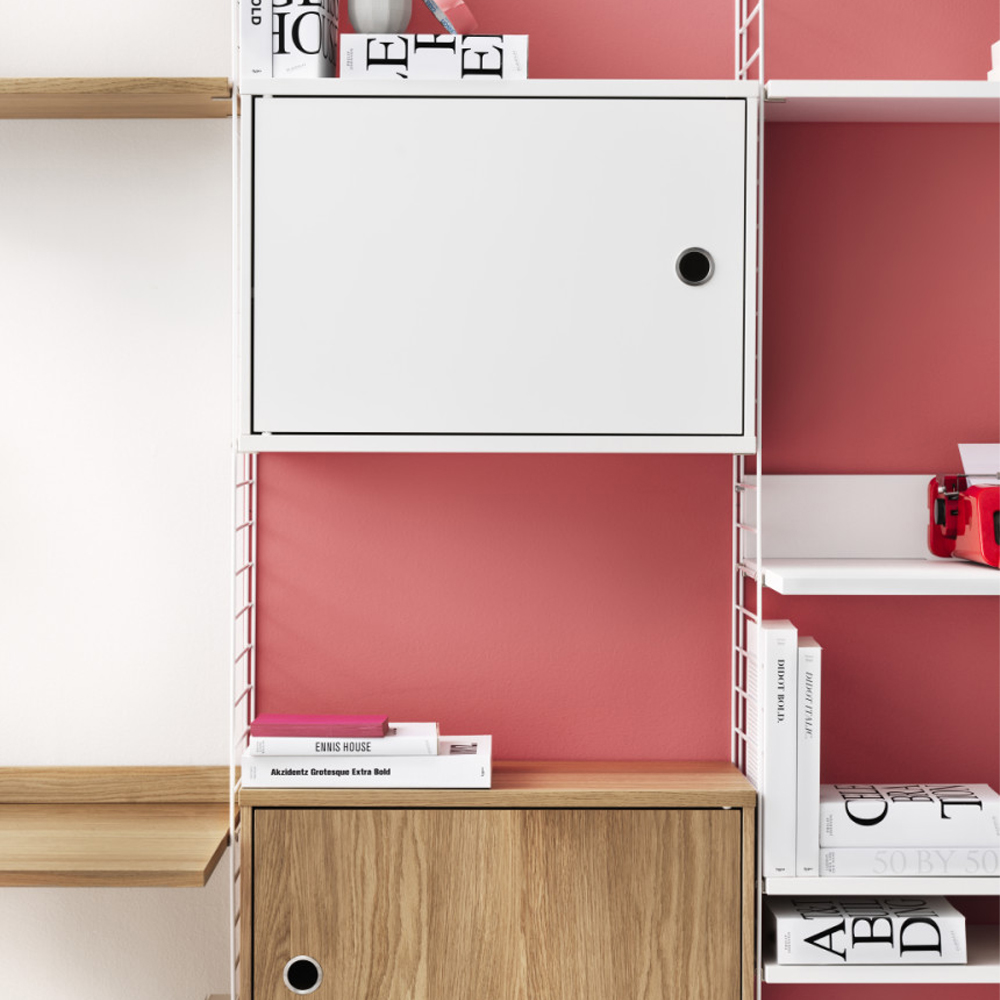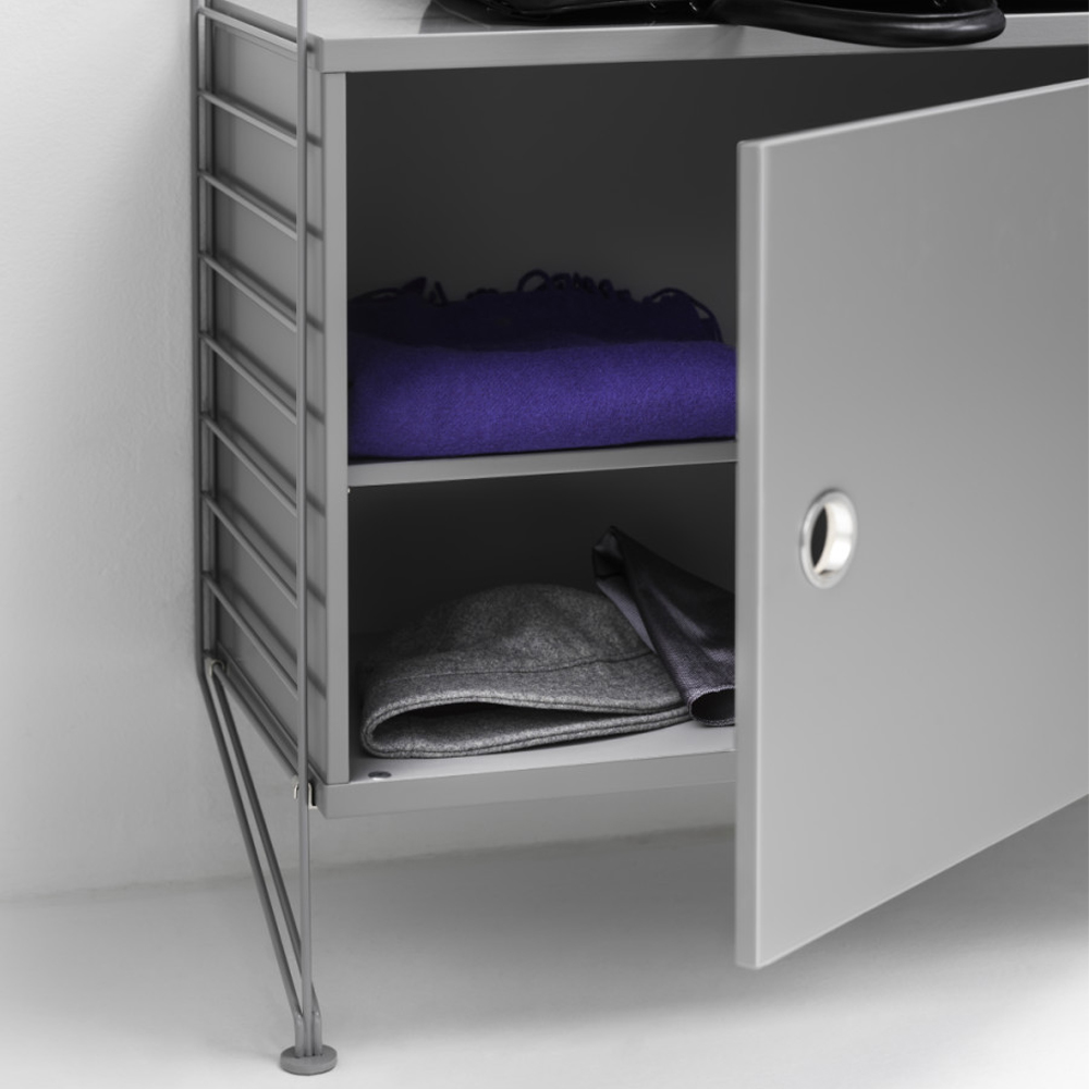 Skabet passer sammen med alle 30 cm dybe tråd- og plexpaneler fra String® System.