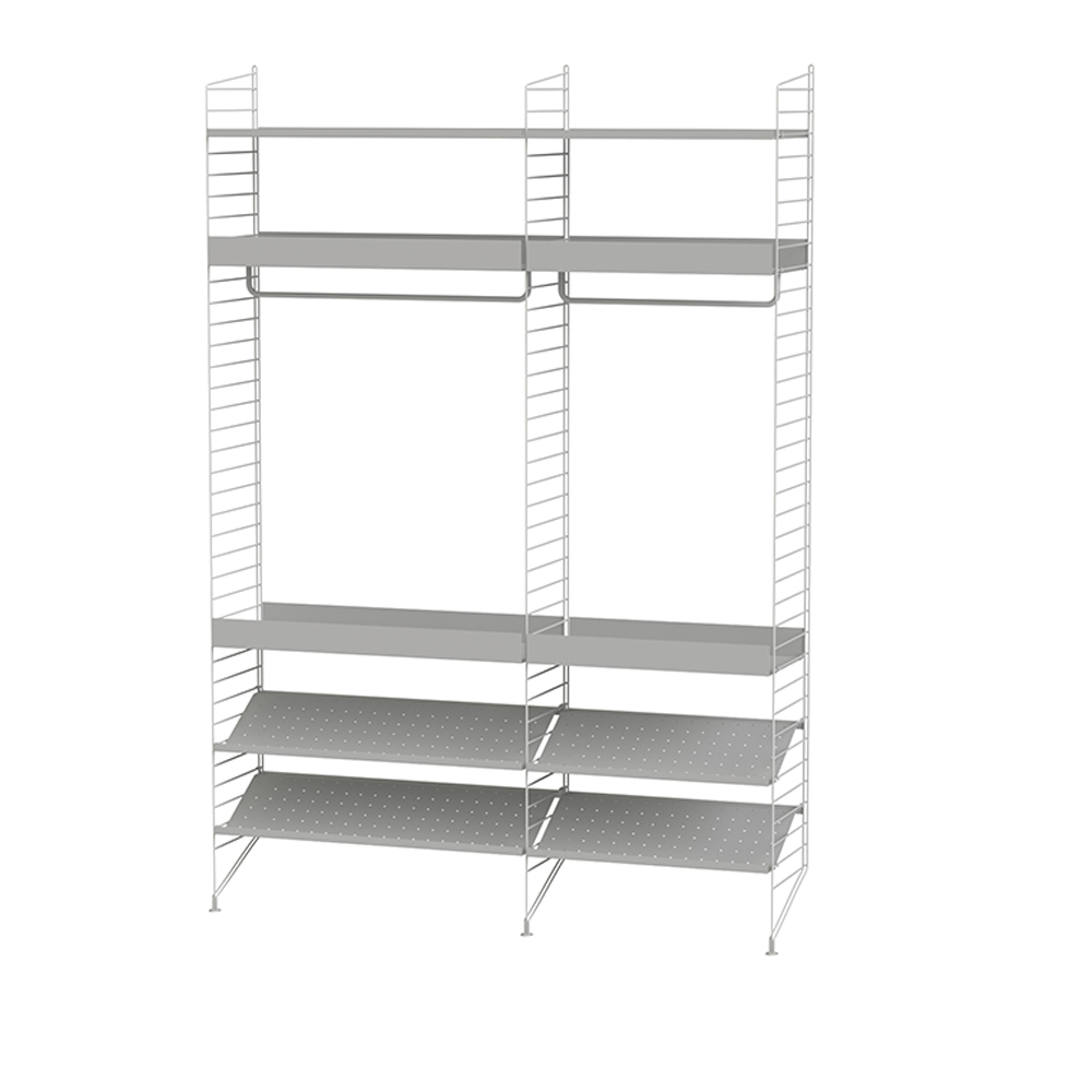 String kombinationerne er modulære opbygninger der er sammensat af flere forskellige String komponenter. Du kan derfor altid bygge til systemet, hvis du i fremtiden ønsker mere opbevaring. I tegneprogrammet kan du ændre, tilføje eller fjerne elementer alt efter dine ønsker og behov.