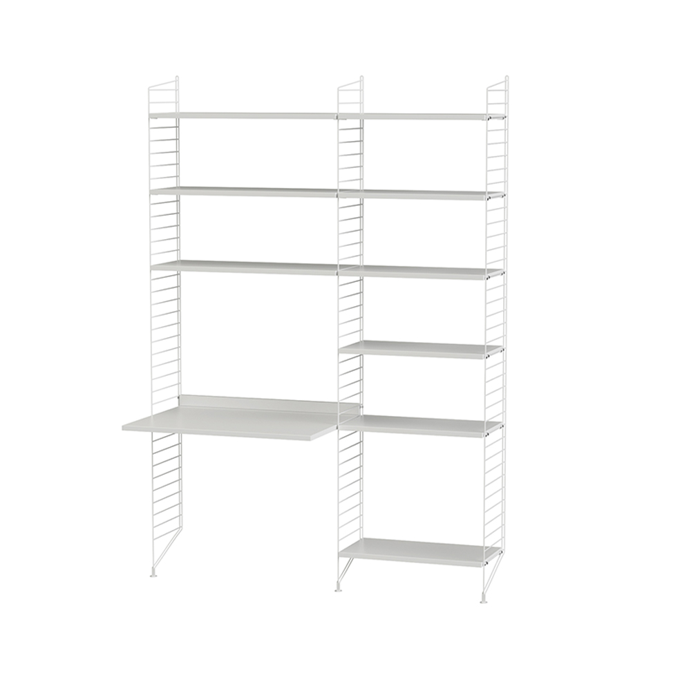 String kombinationerne er modulære opbygninger der er sammensat af flere forskellige String komponenter. Du kan derfor altid bygge til systemet, hvis du i fremtiden ønsker mere opbevaring.