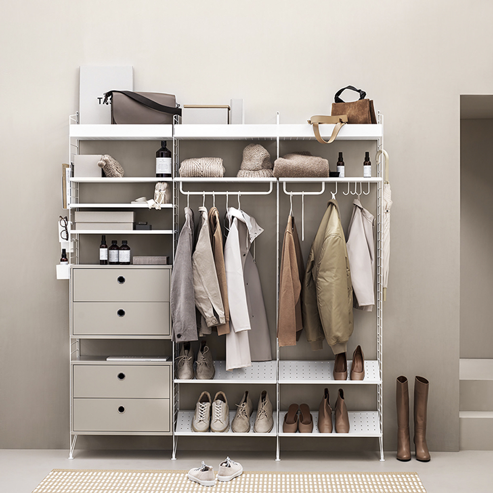 String kombinationerne er modulære opbygninger der er sammensat af flere forskellige String komponenter. Du kan derfor altid bygge til systemet, hvis du i fremtiden ønsker mere opbevaring.