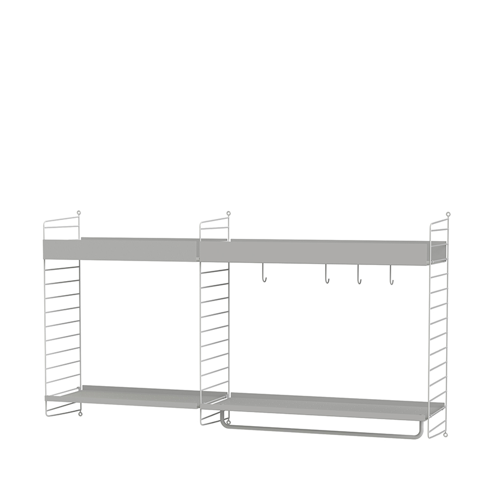String kombinationerne er modulære opbygninger der er sammensat af flere forskellige String komponenter. Du kan derfor altid bygge til systemet, hvis du i fremtiden ønsker mere opbevaring.