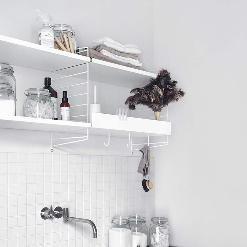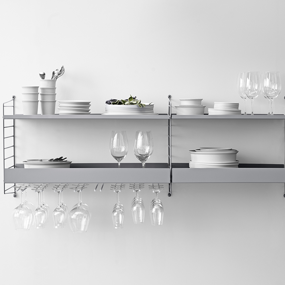 Denne todelte væghængte kombination med metalhylder er perfekt til opbevaring af køkkenredskaber. Det er en fantastisk begynderkombination, og som tiden går, og din samling af køkkengadgets vokser, kan du tilføje tilbehør for øgede opbevaringsmuligheder.
