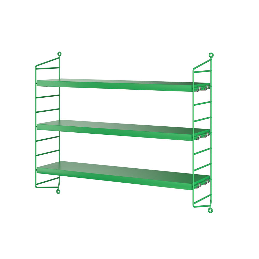 Designet af Nils Strinning i 2005. String Pocket blev hans sidste bidrag til den skandinaviske designportefølje. I modsætning til String System reolsystemet kommer String Pocket som en komplet pakke. En Pocket-hylde består af to væghængte paneler og tre hylder i en række forskellige farvemuligheder.