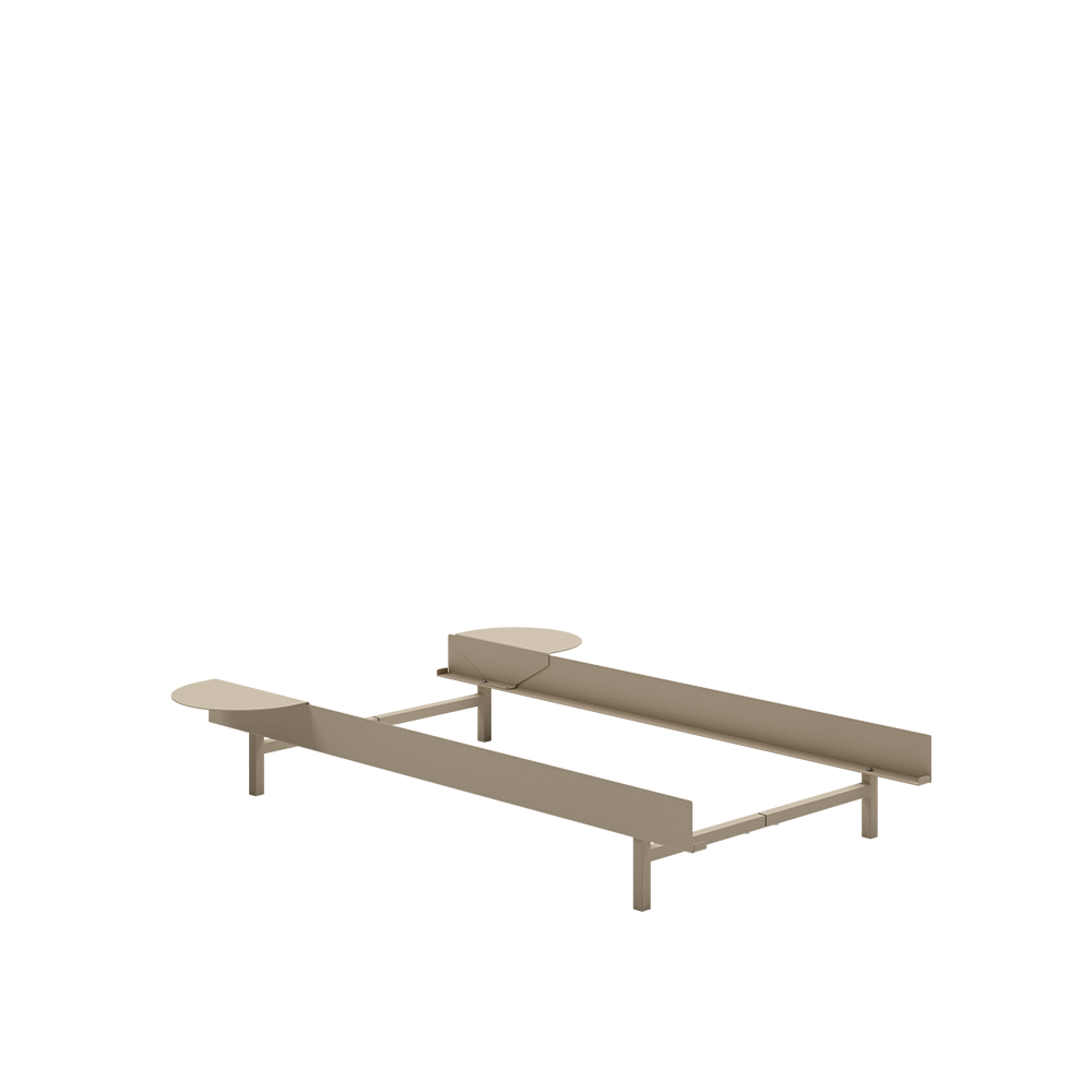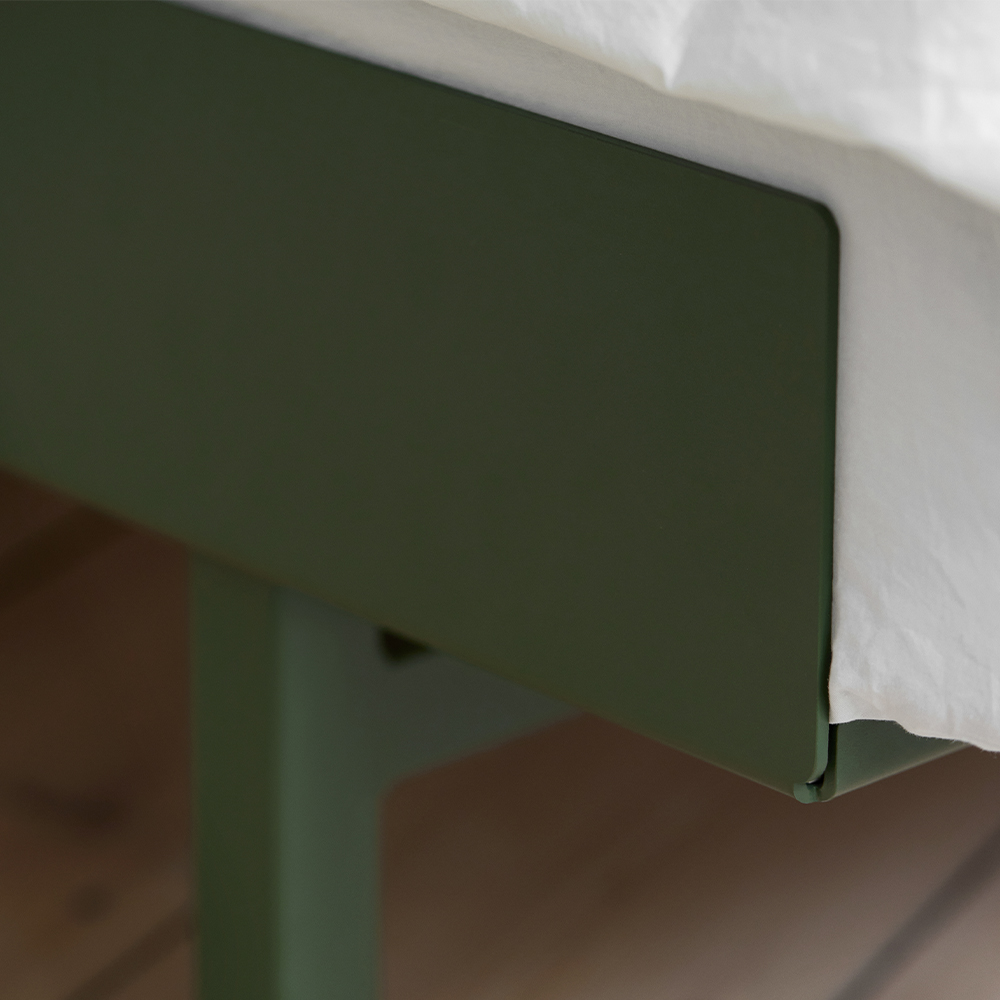 Moebes seng i 90 cm er en minimal og moderne seng lavet af en pulverlakeret stålramme. Har du en springmadras kan du vælge at bruge dine egne sengelameller eller du kan tilkøbe nogle fra Moebes og/eller et valgfrit sengebord.