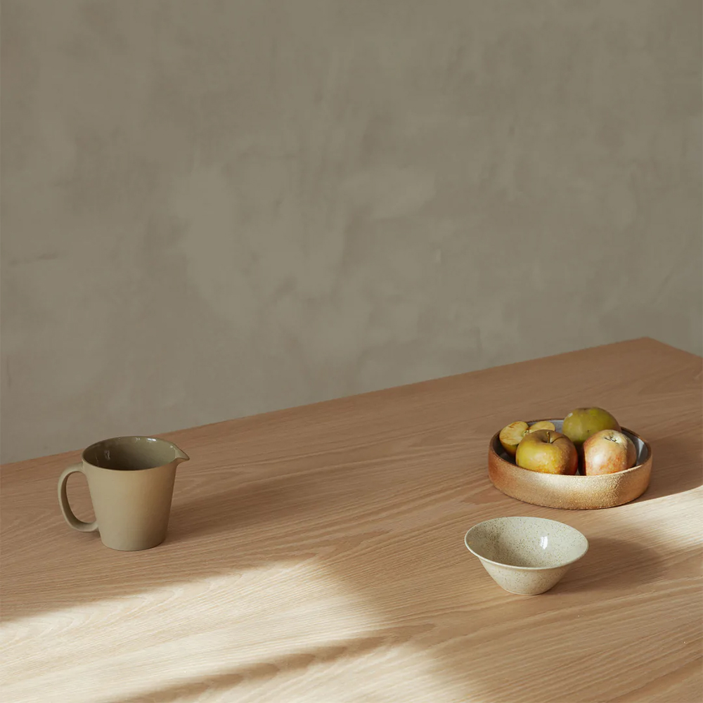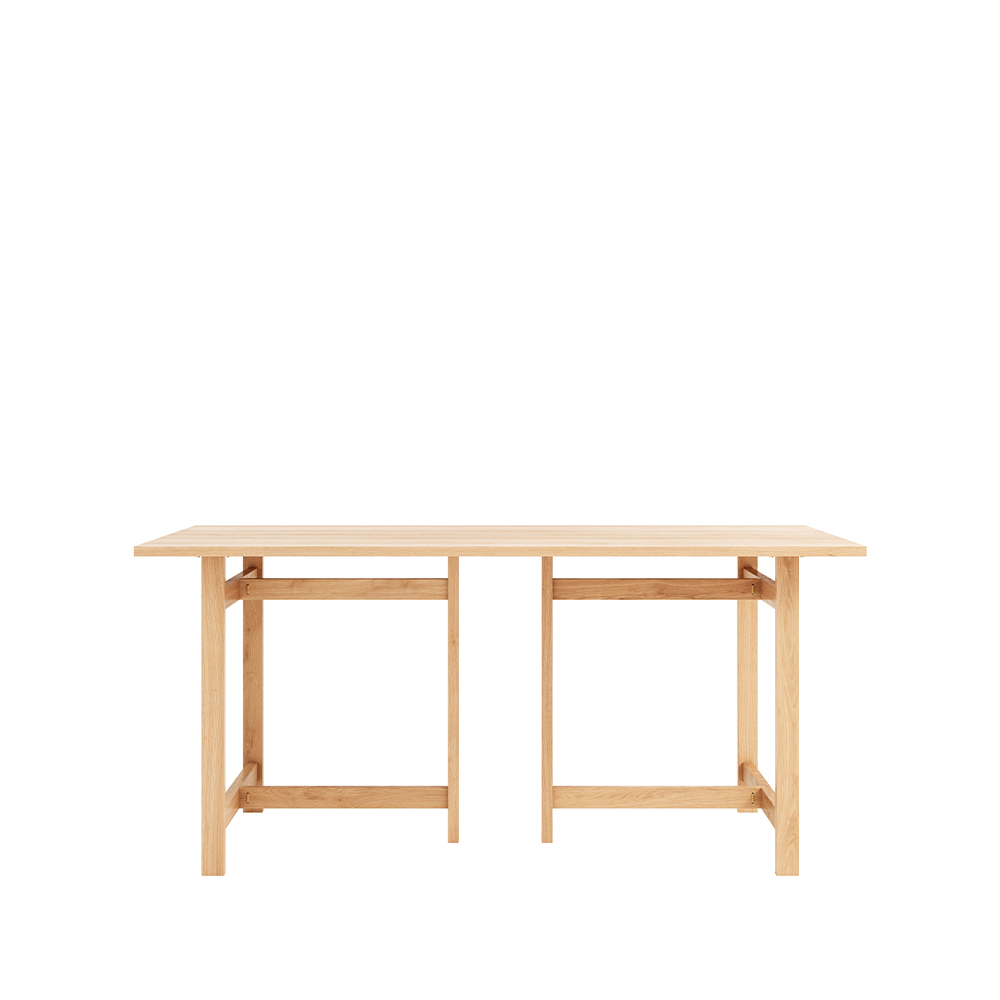 Rektangulært spisebord er enkelt i form og konstruktion. Den ankommer fladt pakket og er samlet i to T-rammer med bordpladen derefter fastgjort ovenpå. Bordet fås i to længder; 160 cm og 220 cm. Den er lavet i Europa og er FSC-certificeret.